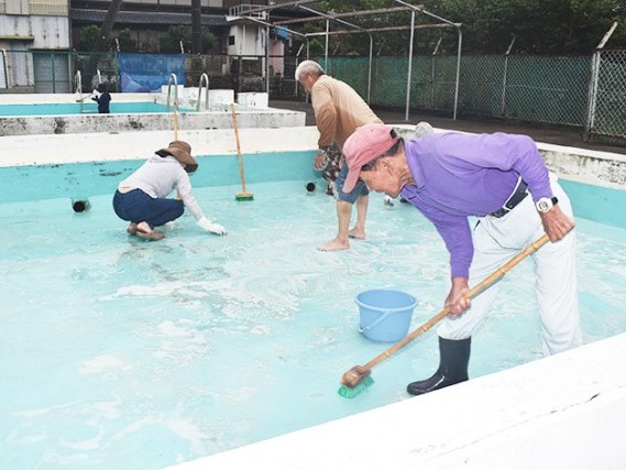 尾鷲市早田町の旧早田小学校のプール開放に向けて、地域住民ら約20人が20日と21日に清掃を行った。今年も8月1日(木)から開放する予定。 早田小が閉校した翌年から学校施設開放運営... 続きを読む