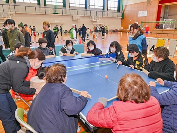 三重県パラスポーツ指導者協議会による障害者のスポーツ教室が24日、尾鷲市光ヶ丘の東紀州くろしお学園おわせ分校体育館で開かれた。障害者や保護者、講師など約70人が卓球バレーや手つなぎサッカーなどで楽しんで交流した。... 続きを読む