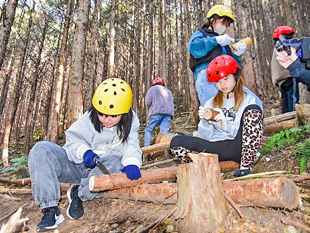 尾鷲市立尾鷲小学校の5年2組の30人が17日、森林に関する尾鷲育に取り組んだ。2班に分かれて、八鬼山棚山のニコニコ公園でアスレチックを楽しみ、間伐した木を切る体験に取り組んだり、木材市場を見学したりした。... 続きを読む