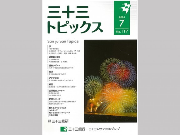 三十三フィナンシャルグループの株式会社三十三総研はこのほど、県内経済や経済界の動きを紹介する「三十三トピックス」第117号を発刊した。A4判カラーで28ページ。 三十三総研調査部の中田丈二主... 続きを読む