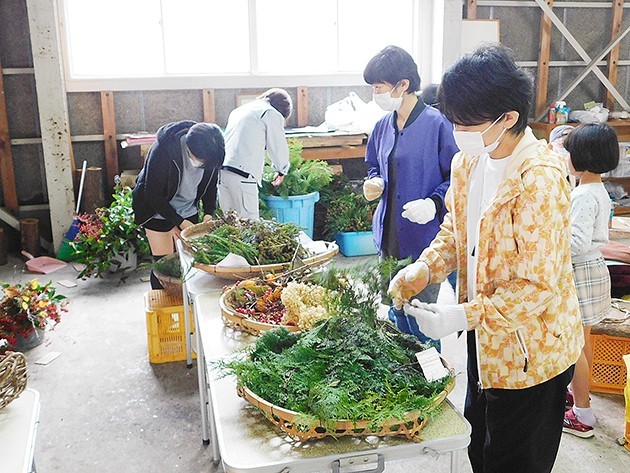 ヒノキリース作り通して 公益財団法人熊野林業は11日、紀宝町成川の浦木林業株式会社作業倉庫内でクラフト