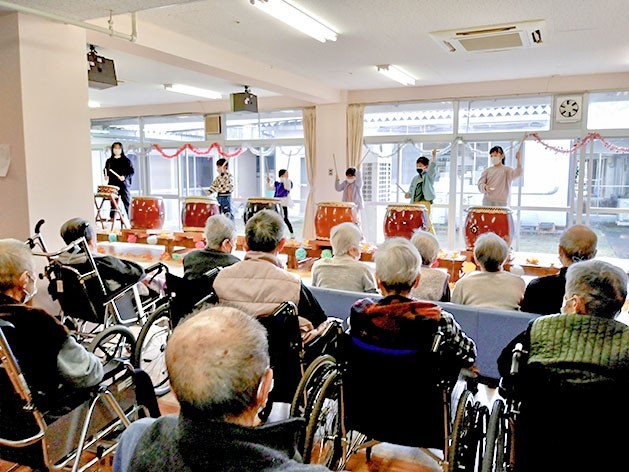 紀北町立赤羽小学校の1、2年生5人が11月28日、老人ホーム赤羽寮を訪問し、迫力のある太鼓演奏を披露した。 赤羽小児童による慰問は毎年恒例行事だったものの、コロナ禍で途絶えていて、実に6年ぶ... 続きを読む