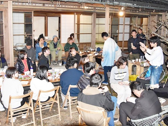 交流会で豊田さんらの話を聞く参加者