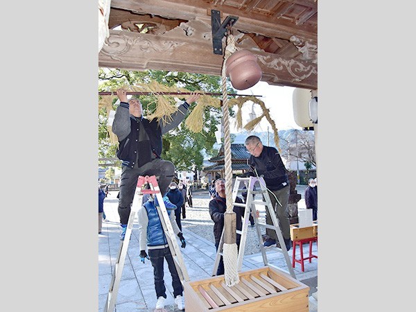 尾鷲市北浦町の尾鷲神社で24日、夫婦楠や拝殿前などのしめ縄が張り替えられた。氏子総代会員と19町の総代や町頭ら約70人が奉仕し、新年を迎える準備を整えた。 長さ約18メートルの夫婦楠用のもの... 続きを読む