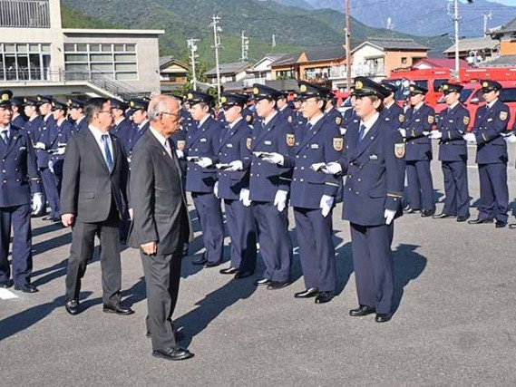 三重紀北消防組合は17日、紀北町相賀の多目的広場で通常点検を実施。管理者の加藤千速尾鷲市長や尾上壽一紀北町長、東欽也消防長ら管理職らが職員52人の服装や手帳、基本的な動作などを点検した。 ... 続きを読む