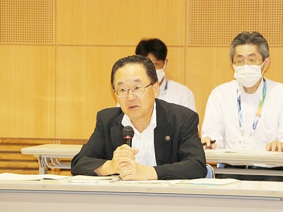 提出議案を説明する河上市長