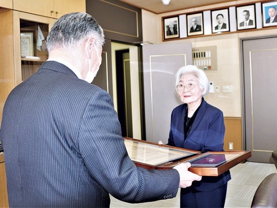 御浜町神木在住で元同町議会議員の中納米子さん(88)へ永年にわたる地方自治への功労をたたえ、総務省から高齢者叙勲の旭日単光章が授与された。町役場で20日、大畑覚町長から叙勲の伝達があり、勲記と勲章が手渡された。... 続きを読む