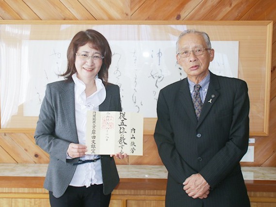 今年8月に82歳で急死した元尾鷲市議の内山鉄芳さんへの叙位伝達が21日、尾鷲市役所であり、加藤千速市長から娘の内山裕紀子さんに従五位の位記を手渡した。 鉄芳さんは平成2年から7期... 続きを読む
