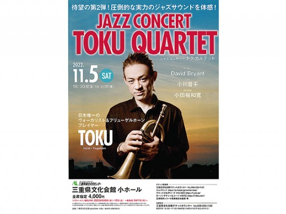 三重県文化会館(津市)は11月5日(土)午後6時30分から、同館小ホールで「ジャズコンサート トク カルテット」を開催する。チケットの一般発売は11日(日)から、同館チケットカウンター・エムズネット・チケットぴあ・ローソンチケッ... 続きを読む