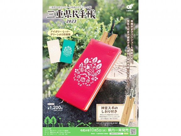 2023年版三重県民手帳が5日から販売されている。地域の伝統工芸の技法を取り入れたものを、三重県印刷工業組合が毎年製作・販売している。暮らしに役立つ情報を多数掲載しており「ぜひご利用を」と呼び掛けている。... 続きを読む