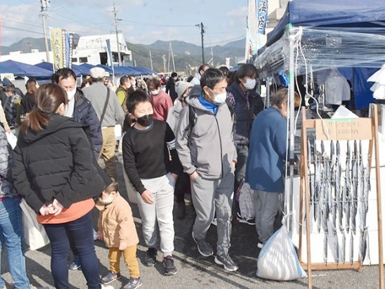 紀北町の歳末の一大イベント、年末きいながしま港市が25日、始まった。長島港の特設会場は海産物を買い求める多くの人で活気づいた。 正月に向けて海産物や干物を連日販売するイベントで、地元の事業者... 続きを読む