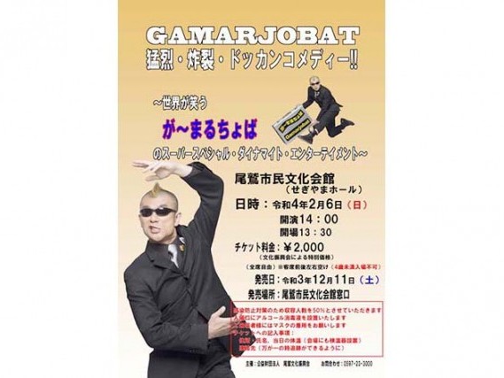 公益財団法人尾鷲文化振興会は来年2月6日(日)、パントマイムアーティストのが~まるちょばさんを招き「GAMARJOBAT 猛烈・炸裂・ドッカンコメディー!!」を開く。11日(土)午前9時から、尾鷲市民文化会館窓口でチケットを販売... 続きを読む