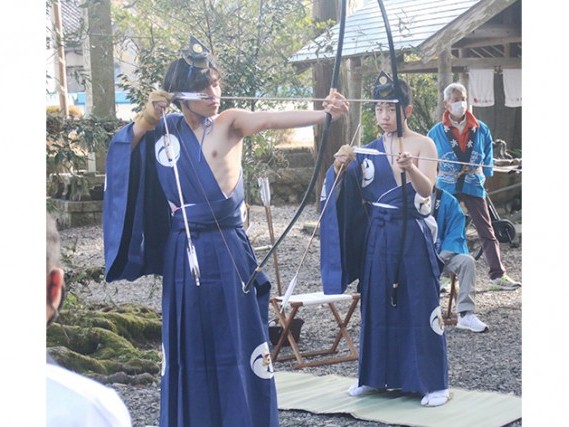 紀北町引本浦の引本神社で9日、八幡祭りの神事「弓取り式」があり、当番町の長浜で選ばれた少年2人が伝統作法にのっとり白羽の矢を放った。 昨年はコロナ禍で神前祭の神事だけに縮小しており、2年ぶり... 続きを読む