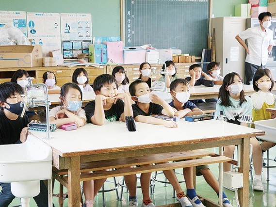 実験通して学ぶ 御浜町立御浜小学校で13日、三重県教育委員会の学校防災・危機管理班による防災学習があり