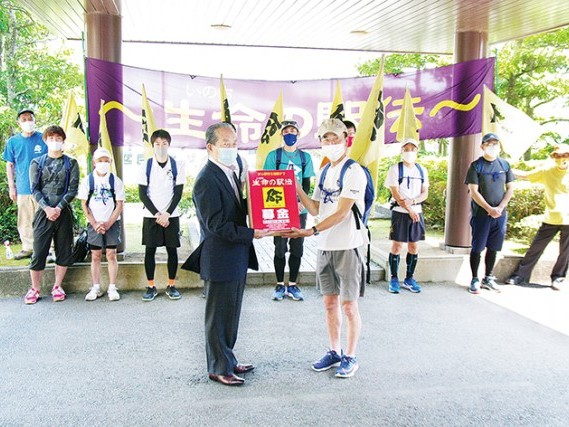 紀宝町役場で5月31日、がん研究への支援を呼びかける「生命(いのち)の駅伝」の出発式が行われた。同町での出発に際して、実行委員長の上村眞由(まさよし)さんによる進行のもと、西田健町長、紀南病院の加藤弘幸院長があいさつをした。町長... 続きを読む
