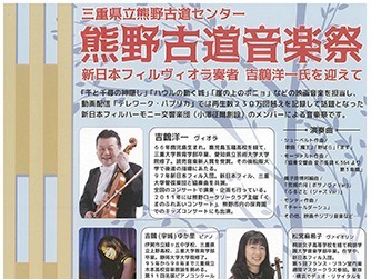尾鷲市向井の県立熊野古道センターは来年1月16日(土)午後1時30分から3時まで、熊野古道音楽祭「新日本フィルヴィオラ奏者吉鶴洋一氏を迎えて」を開く。 吉鶴さんは「千と千尋の神隠し」や「ハウルの動く城」「崖の上のポニョ... 続きを読む
