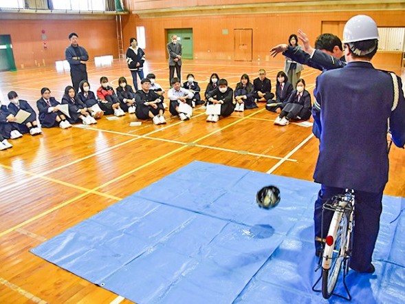 尾鷲署と尾鷲地区交通安全協会は9日、紀北町立三船中学校を自転車安全教育モデル校に指定した。指定書が村上敦交通課長から、生徒への啓発物品が東博也安全協会長から、それぞれ鈴木克彦校長に手渡された後、自転車の点検、ヘルメット着用の大切... 続きを読む