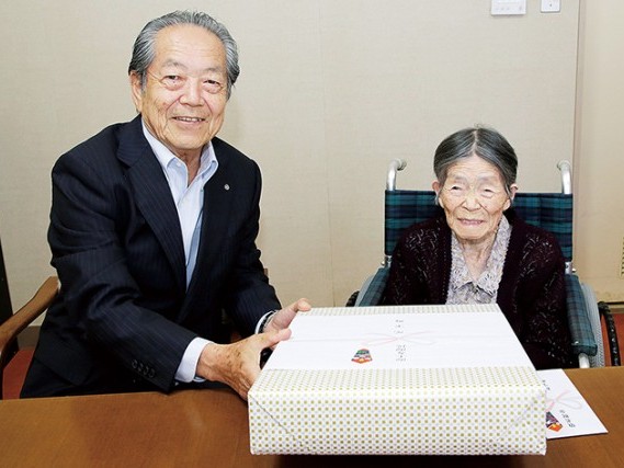 紀宝町は10日、敬老の日(16日)を前に毎年恒例の高齢者訪問を行い、年内に100歳を迎える2人に高齢者祝い金と記念品を渡した。 西田健町長は同町北桧杖の紀南特別養護老人ホーム「宝寿園」に入所... 続きを読む