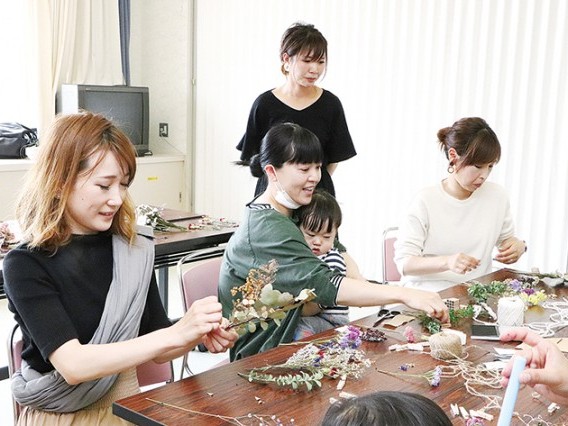 紀宝町社会福祉協議会は13日、町福祉センターで子育て支援「やってみようひろば」を開いた。参加者6人が、講師の森岡あゆみさん指導のもと、10数種類の小さなブーケを束ねて、ドライフラワーガーランドを完成させた。 母親のリ... 続きを読む