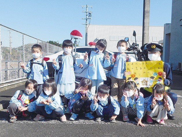 スーパーで買い物体験 紀宝町立相野谷保育所の園児(年長4人、年中6人)は15日、紀宝警察署を訪れ、警察