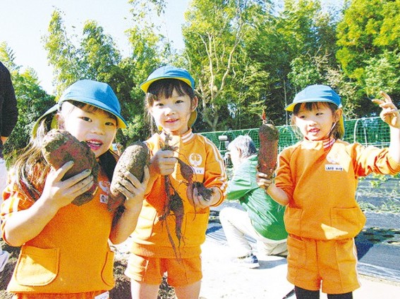紀宝町立うどの幼稚園と同鵜殿保育所は11日、同町鵜殿にある大倉孝司さんの畑で、サツマイモの芋掘り体験を行った。年長の41人(幼稚園32人、保育園9人)は秋晴れの下、土の中で立派に育った「紅はるか」を力いっぱい収穫していった。... 続きを読む