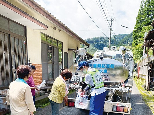 球磨村で給水活動を行う紀宝町職員(提供写真)