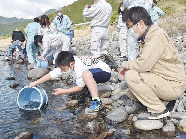 紀北町の銚子川漁協が4日、銚子川と上流の又口川にアユの稚魚1万2000匹を放した。 三重県や尾鷲市、紀北町の補助を受けて毎年行っているもので、組合員をはじめ、放流には稚アユの購入... 続きを読む