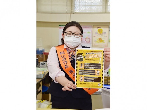 年金支給日の15日を前に、紀北信用金庫は振り込め詐欺撲滅運動に取り組んでいる。県信用金庫協会が県内各信金と連携して行っているもので、核店舗の内勤職員が「振込め詐欺撲滅運動実施中」と書かれたオレンジ色のたすきをつけて勤務。窓口に来... 続きを読む