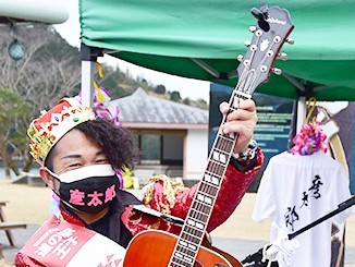 各地の道の駅を巡って演奏活動をしているシンガーソングライターの彦太郎が2月27、28の両日、道の駅紀伊長島マンボウで演奏を行った=写真。 道の駅