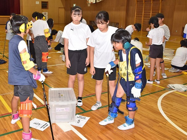 紀北町立相賀小6年生33人が3日、お年寄りの動きを疑似体験する福祉学習に取り組んだ。重りやサポーターをつけて動き、高齢者の日常生活の一端を体感した。 自分や周りを尊重してともに生きる力をつち... 続きを読む