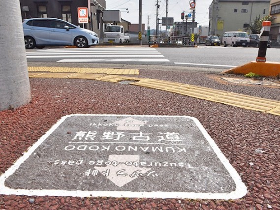 紀北町はこのほど、町内にある熊野古道の5つの峠をつなごうと、「熊野古道/KUMANO KODO」と書かれた道標の路面シートを95か所に設置した=写真。 世界遺産登録20周年に向けて、熊野古道... 続きを読む