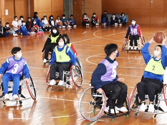 紀北町立潮南中学校で27日、車いすバスケットボール選手による福祉学習があり、全校生徒89人が車いすに乗りながらボールを扱い、模擬試合にも挑戦した。 県が取り組んでい... 続きを読む