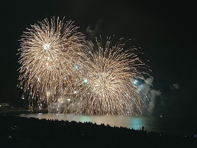 夜空と海面照らす 熊野市で花火打ち上げ