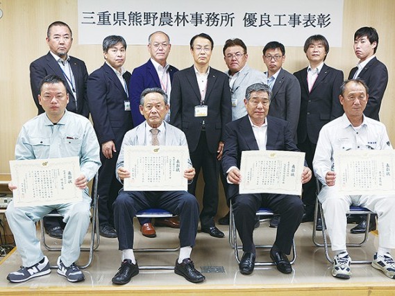 令和3年度に完成した三重県の熊野農林事務所発注の建設工事で他の見本となる推奨すべき工事を行ったとして、熊野市井戸町の県熊野庁舎で24日、有限会社徳田組(紀宝町)が優良工事表彰を受け、﨑建設株式会社(紀宝町)が同表彰の若手部門を授... 続きを読む