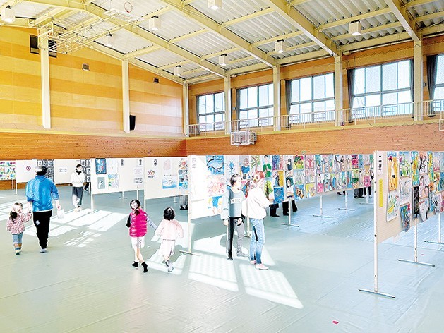 図画習字の力作並ぶ 南郡熊野市 児童生徒の作品展