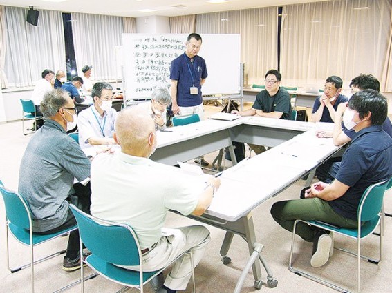 課題や施策を話し合う 御浜町はこのほど、基幹作物であるミカンの生産量確保に向