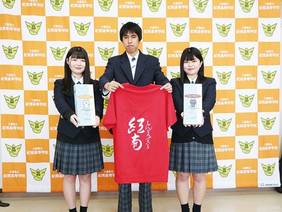 御浜町阿田和の三重県立紀南高校で16日、昨年11月から進めていた紀南高校生徒会・熊野エリア道の駅協議会コラボ企画の熊野をPRする商品が完成し、生徒会の東涼会長、竹鼻友萌副会長、松葉晴華副会長の3人(いずれも2年生)が出来上がった... 続きを読む