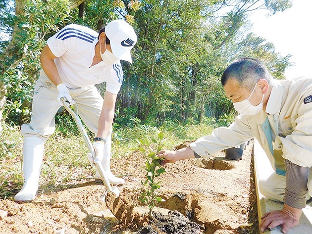ミカン彩る景色に期待 国道沿いに苗木植える