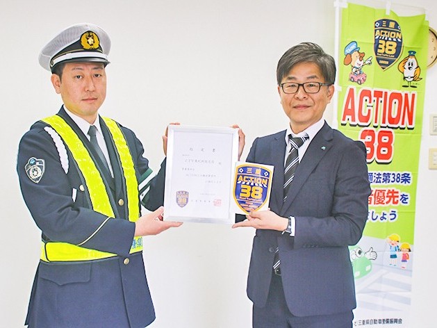 尾鷲署は5日、横断歩行者の交通事故ゼロを目指す「ACTION(アクション)38」の推進事業所にZTV東紀州放送局(尾鷲市古戸町)を指定した。 ACTION38は信号機のない横断歩... 続きを読む