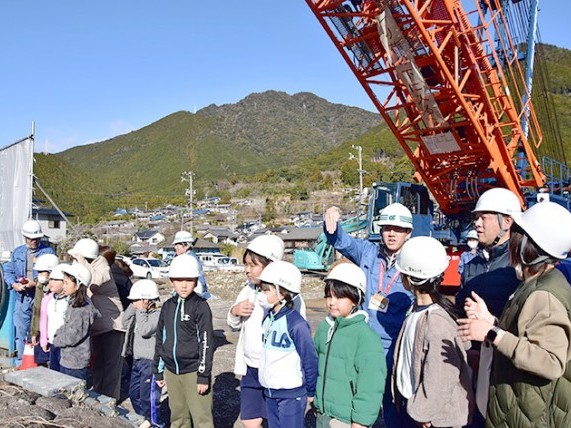 尾鷲市立賀田小学校の児童29人がこのほど、学校近くで行われている橋の架け替え工事現場を見学。大型の建設機械が動く様子を見たり、ショベルカーの操縦席に座ったり、ドローンを飛ばす体験などを行った。  ... 続きを読む