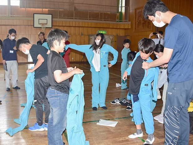 尾鷲市が2019年度から取り組んでいる自然体験学習「僕らの遊び場づくり」は本年度、矢浜小学校6年生14人が取り組む。29日に第1回講座があり、児童らはプレゼントされた青いつなぎを試着したり、尾鷲の魅力を考える授業に取り組んだりし... 続きを読む