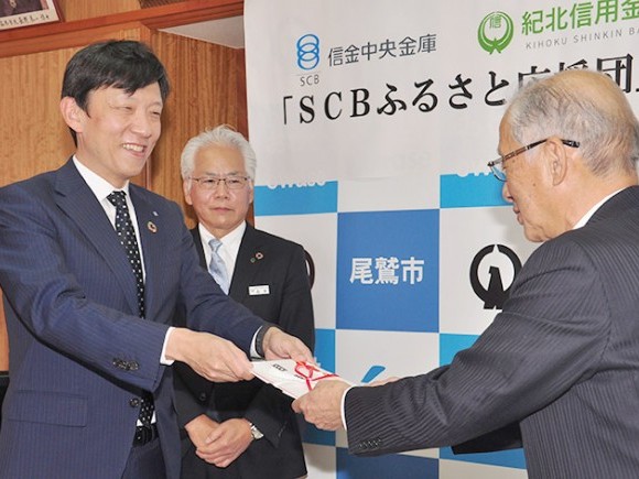 熊野古道を活用した観光振興に 尾鷲市に1000万円寄付 信金中金
