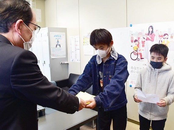 尾鷲市立尾鷲小学校は15日、学校で集めたアルミ缶の販売収益4300円を、赤い羽根共同募金に寄付した。主体となって活動している福祉ボランティア委員会(樋口大心委員長)の湯浅大輔君、藤田陽仁君=いずれも6年生=の2人が市社会福祉協議... 続きを読む