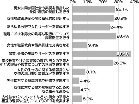 保育、介護サービスの充実を 男女共同参画推進アンケート
