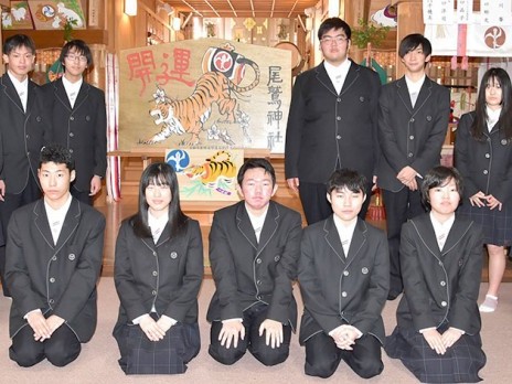 尾鷲高校の美術部員と書道部員が制作した来年の干支(えと)・寅(とら)の大絵馬が24日、尾鷲神社に奉納された。中心になって関わった美術部の2年生と書道部の1、2年生の合わせて12人が絵馬を掲げて参拝した。 絵馬は幅135センチ、高さ91... 続きを読む