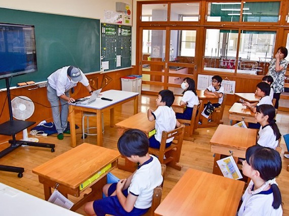 尾鷲市立宮之上小学校で8日、市立天文科学館の出前授業があり、4年生と6年生が同館の内山雅之館長の解説を聞き、星の動きや月の満ち欠けについて学んだ。 4年生は11人はシミュレーショ... 続きを読む