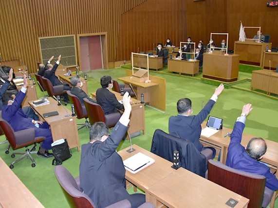 賛成8、反対4 尾鷲市議会は9日、臨時議会を開き、東紀州