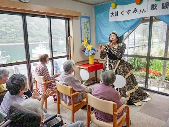 尾鷲市梶賀町のグループホームしあわせで3日、賀田の大川欽生さん、くすみさん夫婦を招き歌謡ショーが行われた。入所者9人は、懐かしい歌の数々を堪能した。 大川欽生さんは、梶賀の隣町の賀田町で「み... 続きを読む