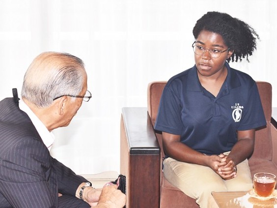 尾鷲市の小中学校で外国語指導助手(ALT)を務めたシャカイナ・アリース・マルケイさんが24日、加藤千速市長へ離任のあいさつに訪れた。 アメリカ・オハイオ州出身のシャカイナさんは一昨年の9月か... 続きを読む