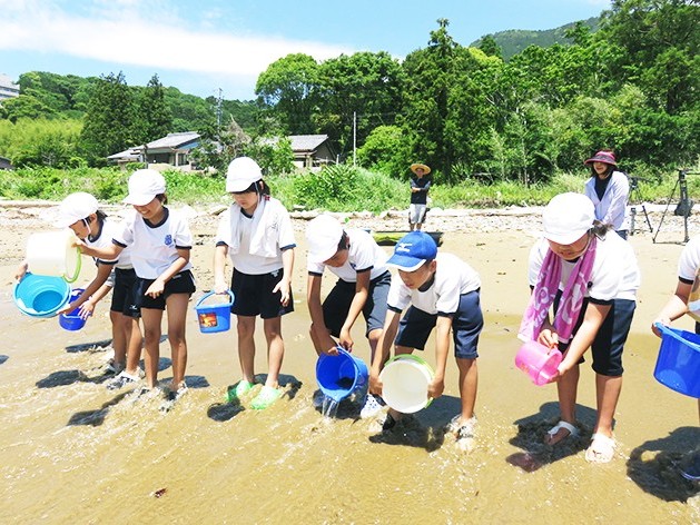 ヒラメ稚魚放流体験学習会が22日、尾鷲市天満浦の古里海岸であった。市立宮之上小学校の5年生12人がヒラメの生態などについて教わった後、体長8センチほどの稚魚をバケツで海に放した。 子どもたちに放流してもらうことで魚や... 続きを読む